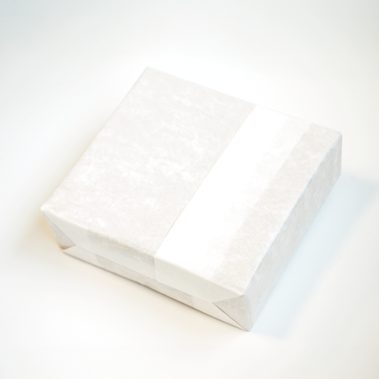 一番最初に手に取る外箱も、白い和紙で丁寧に包みました。全体をやさしいトーンでまとめ、落ち着いた統一感を感じられる仕上がりに。和紙のやわらかな質感が、心のこもったぬくもりを感じさせます。