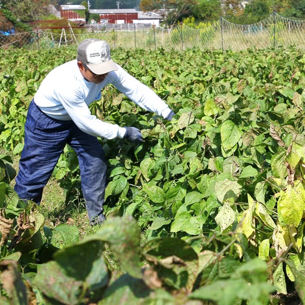 黒枝豆は秋が深まる10月中頃から下旬にかけて、日を追うごとに熟成が進み、サヤに茶色い斑点や黒っぽい模様が現れたものを収穫します。1年の中でわずか2週間ほどしか出回らない黒枝豆を求めて、この時期の丹波地域は道路渋滞が起こるほど多くの方が訪れます。そんな幻の黒枝豆を今年も数量限定で販売します。